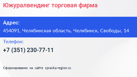 Южуралвендинг, торговая фирма по адресу 454091, Челябинская область, Челябинск, Свободы, 14 в дальнейшем Организация, размещена в следующих категориях: