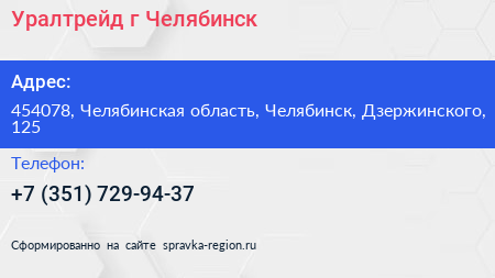 Уралтрейд, г. Челябинск по адресу 454078, Челябинская область, Челябинск, Дзержинского, 125 в дальнейшем Организация, размещена в следующих категориях: