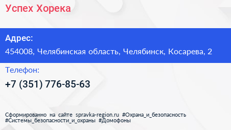 Успех Хорека по адресу 454008, Челябинская область, Челябинск, Косарева, 2 в дальнейшем Организация, размещена в следующих категориях: