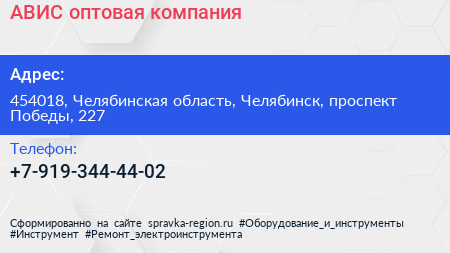 АВИС, оптовая компания по адресу 454018, Челябинская область, Челябинск, проспект Победы, 227 в дальнейшем Организация, размещена в следующих категориях: