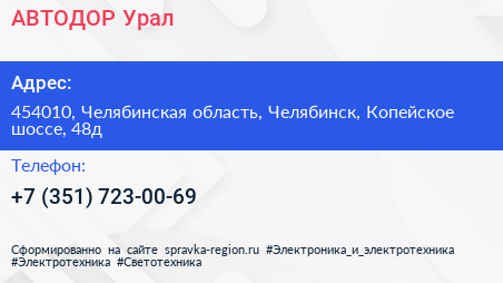 АВТОДОР-Урал по адресу 454010, Челябинская область, Челябинск, Копейское шоссе, 48д в дальнейшем Организация, размещена в следующих категориях:
