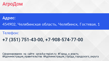 АгроДом по адресу 454902, Челябинская область, Челябинск, Гостевая, 1 в дальнейшем Организация, размещена в следующих категориях: