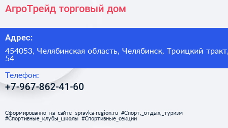 АгроТрейд, торговый дом по адресу 454053, Челябинская область, Челябинск, Троицкий тракт, 54 в дальнейшем Организация, размещена в следующих категориях: