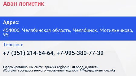 Аван логистик по адресу 454006, Челябинская область, Челябинск, Могильникова, 95 в дальнейшем Организация, размещена в следующих категориях:
