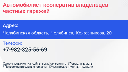 Автомобилист, кооператив владельцев частных гаражей по адресу Челябинская область, Челябинск, Кожевникова, 20 в дальнейшем Организация, размещена в следующих категориях:
