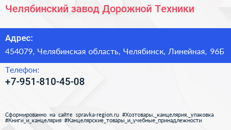 Челябинский завод Дорожной Техники по адресу 454079, Челябинская область, Челябинск, Линейная, 96Б в дальнейшем Организация, размещена в следующих категориях:
