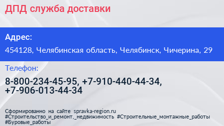 ДПД, служба доставки по адресу 454128, Челябинская область, Челябинск, Чичерина, 29 в дальнейшем Организация, размещена в следующих категориях: