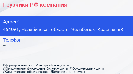Грузчики.РФ, компания по адресу 454091, Челябинская область, Челябинск, Красная, 63 в дальнейшем Организация, размещена в следующих категориях: