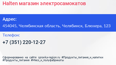Halten, магазин электросамокатов по адресу 454045, Челябинская область, Челябинск, Блюхера, 123 в дальнейшем Организация, размещена в следующих категориях: