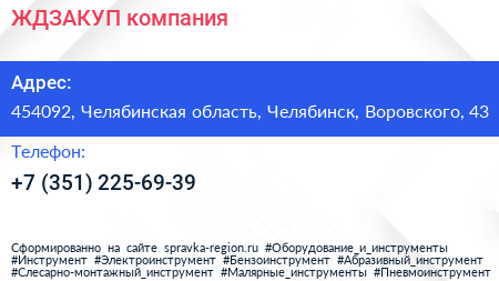 ЖДЗАКУП, компания по адресу 454092, Челябинская область, Челябинск, Воровского, 43 в дальнейшем Организация, размещена в следующих категориях: