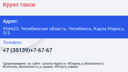 Круиз, такси по адресу 456623, Челябинская область, Челябинск, Карла Маркса, 3/1 в дальнейшем Организация, размещена в следующих категориях: