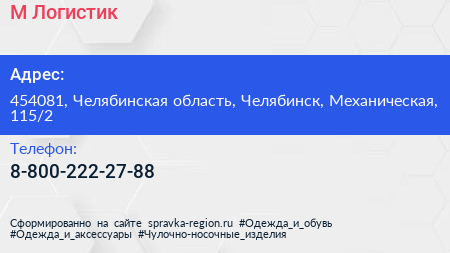 М-Логистик по адресу 454081, Челябинская область, Челябинск, Механическая, 115/2 в дальнейшем Организация, размещена в следующих категориях: