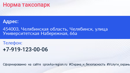 Норма, таксопарк по адресу 454003, Челябинская область, Челябинск, улица Университетская Набережная, 66а в дальнейшем Организация, размещена в следующих категориях: