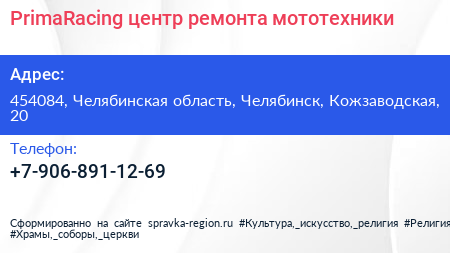 PrimaRacing, центр ремонта мототехники по адресу 454084, Челябинская область, Челябинск, Кожзаводская, 20 в дальнейшем Организация, размещена в следующих категориях:
