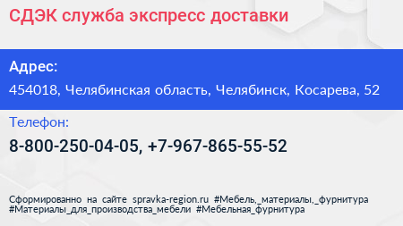 СДЭК, служба экспресс-доставки по адресу 454018, Челябинская область, Челябинск, Косарева, 52 в дальнейшем Организация, размещена в следующих категориях: