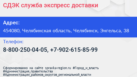 СДЭК, служба экспресс-доставки по адресу 454080, Челябинская область, Челябинск, Энгельса, 38 в дальнейшем Организация, размещена в следующих категориях: