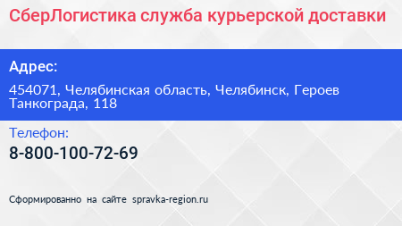 СберЛогистика, служба курьерской доставки по адресу 454071, Челябинская область, Челябинск, Героев Танкограда, 118 в дальнейшем Организация, размещена в следующих категориях: