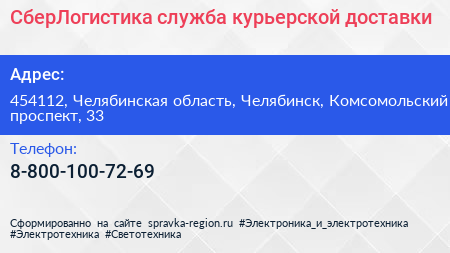 СберЛогистика, служба курьерской доставки по адресу 454112, Челябинская область, Челябинск, Комсомольский проспект, 33 в дальнейшем Организация, размещена в следующих категориях: