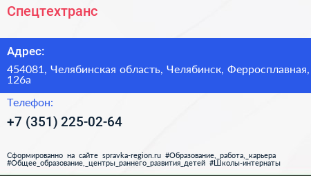 Спецтехтранс по адресу 454081, Челябинская область, Челябинск, Ферросплавная, 126а в дальнейшем Организация, размещена в следующих категориях: