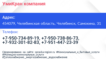 УмиКран, компания по адресу 454079, Челябинская область, Челябинск, Самохина, 31 в дальнейшем Организация, размещена в следующих категориях: