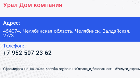 Урал-Дом, компания по адресу 454074, Челябинская область, Челябинск, Валдайская, 27/3 в дальнейшем Организация, размещена в следующих категориях: