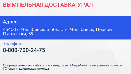 ВЫМПЕЛЬНАЯ ДОСТАВКА-УРАЛ по адресу 454007, Челябинская область, Челябинск, Первой Пятилетки, 59 в дальнейшем Организация, размещена в следующих категориях: