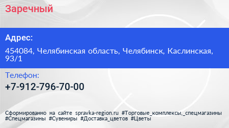 Заречный по адресу 454084, Челябинская область, Челябинск, Каслинская, 93/1 в дальнейшем Организация, размещена в следующих категориях: