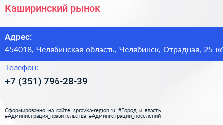 Каширинский, рынок по адресу 454018, Челябинская область, Челябинск, Отрадная, 25 к6 в дальнейшем Организация, размещена в следующих категориях:
