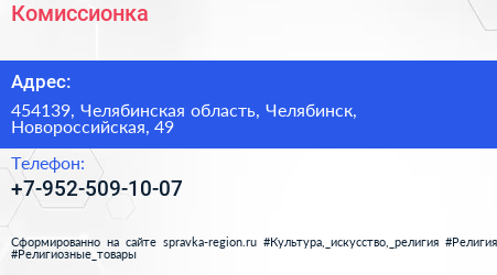 Комиссионка по адресу 454139, Челябинская область, Челябинск, Новороссийская, 49 в дальнейшем Организация, размещена в следующих категориях: