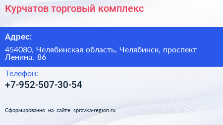 Курчатов, торговый комплекс по адресу 454080, Челябинская область, Челябинск, проспект Ленина, 86 в дальнейшем Организация, размещена в следующих категориях: