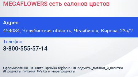 MEGAFLOWERS, сеть салонов цветов по адресу 454084, Челябинская область, Челябинск, Кирова, 23а/2 в дальнейшем Организация, размещена в следующих категориях: