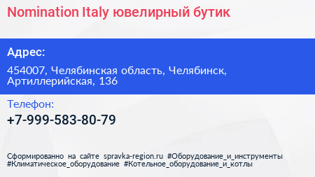 Nomination Italy, ювелирный бутик по адресу 454007, Челябинская область, Челябинск, Артиллерийская, 136 в дальнейшем Организация, размещена в следующих категориях: