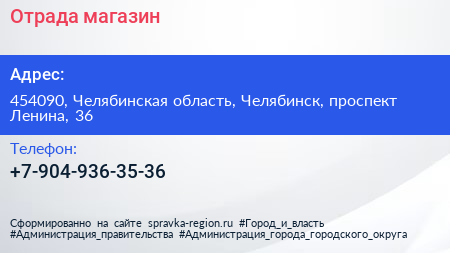Отрада, магазин по адресу 454090, Челябинская область, Челябинск, проспект Ленина, 36 в дальнейшем Организация, размещена в следующих категориях:
