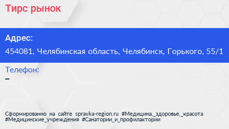 Тирс, рынок по адресу 454081, Челябинская область, Челябинск, Горького, 55/1 в дальнейшем Организация, размещена в следующих категориях:
