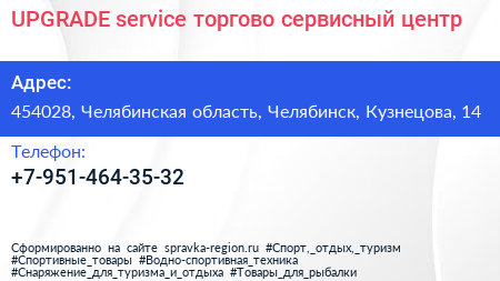 UPGRADE-service, торгово-сервисный центр по адресу 454028, Челябинская область, Челябинск, Кузнецова, 14 в дальнейшем Организация, размещена в следующих категориях: