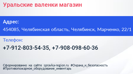 Уральские валенки, магазин по адресу 454085, Челябинская область, Челябинск, Марченко, 22/1 в дальнейшем Организация, размещена в следующих категориях: