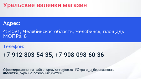 Уральские валенки, магазин по адресу 454091, Челябинская область, Челябинск, площадь МОПРа, 8 в дальнейшем Организация, размещена в следующих категориях: