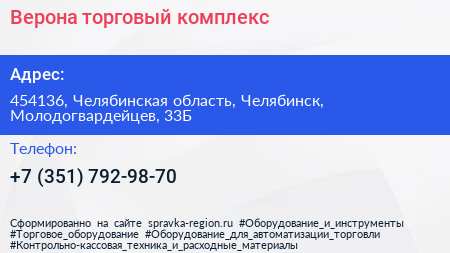 Верона, торговый комплекс по адресу 454136, Челябинская область, Челябинск, Молодогвардейцев, 33Б в дальнейшем Организация, размещена в следующих категориях: