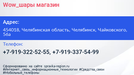 Wow_шары, магазин по адресу 454018, Челябинская область, Челябинск, Чайковского, 56а в дальнейшем Организация, размещена в следующих категориях: