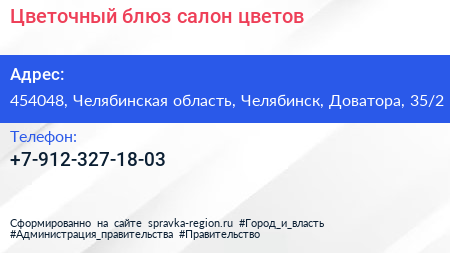 Цветочный блюз, салон цветов по адресу 454048, Челябинская область, Челябинск, Доватора, 35/2 в дальнейшем Организация, размещена в следующих категориях: