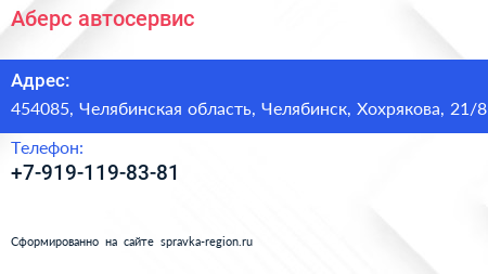 Аберс, автосервис по адресу 454085, Челябинская область, Челябинск, Хохрякова, 21/8 в дальнейшем Организация, размещена в следующих категориях: