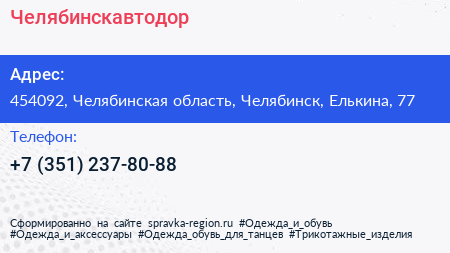 Челябинскавтодор по адресу 454092, Челябинская область, Челябинск, Елькина, 77 в дальнейшем Организация, размещена в следующих категориях: