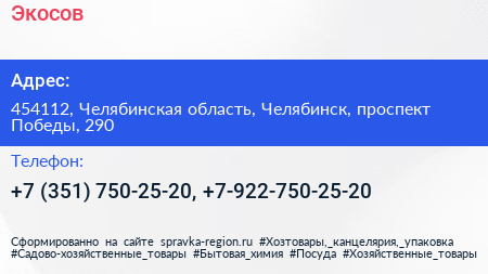 Экосов по адресу 454112, Челябинская область, Челябинск, проспект Победы, 290 в дальнейшем Организация, размещена в следующих категориях: