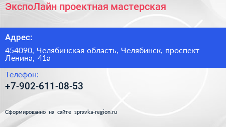 ЭкспоЛайн, проектная мастерская по адресу 454090, Челябинская область, Челябинск, проспект Ленина, 41а в дальнейшем Организация, размещена в следующих категориях: