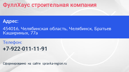ФуллХаус, строительная компания по адресу 454016, Челябинская область, Челябинск, Братьев Кашириных, 77а в дальнейшем Организация, размещена в следующих категориях: