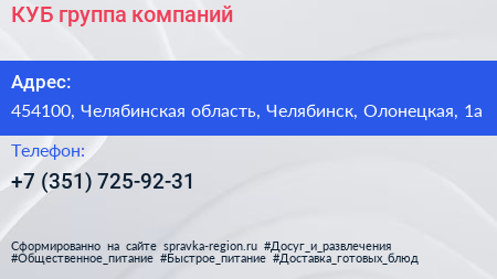 КУБ, группа компаний по адресу 454100, Челябинская область, Челябинск, Олонецкая, 1а в дальнейшем Организация, размещена в следующих категориях: