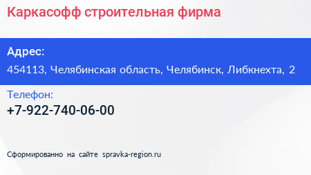 Каркасофф, строительная фирма по адресу 454113, Челябинская область, Челябинск, Либкнехта, 2 в дальнейшем Организация, размещена в следующих категориях: