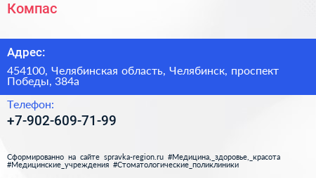 Компас по адресу 454100, Челябинская область, Челябинск, проспект Победы, 384а в дальнейшем Организация, размещена в следующих категориях: