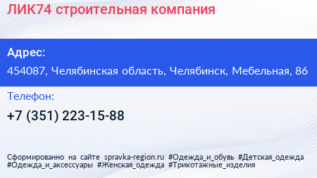 ЛИК74, строительная компания по адресу 454087, Челябинская область, Челябинск, Мебельная, 86 в дальнейшем Организация, размещена в следующих категориях: