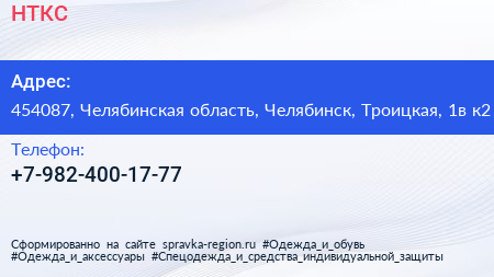 НТКС по адресу 454087, Челябинская область, Челябинск, Троицкая, 1в к2 в дальнейшем Организация, размещена в следующих категориях: